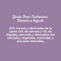 52% Carnes y derivados de la carne (4% de ternera y 4% de hígado), pescado y derivados del pescado, vegetales, minerales y azúcares naturales.