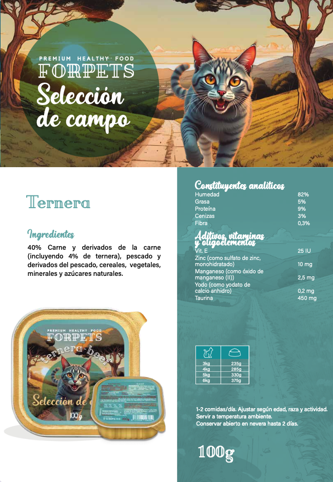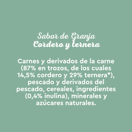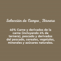 40% Carne y derivados de la carne (incluyendo 4% de ternera), pescado y derivados del pescado, cereales, vegetales,